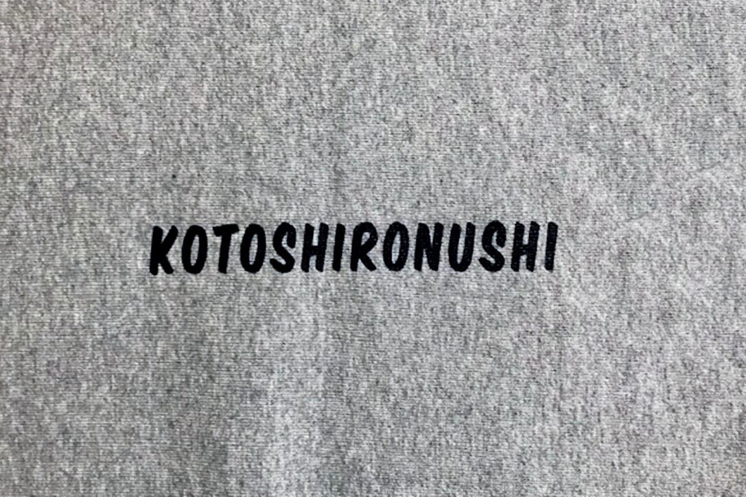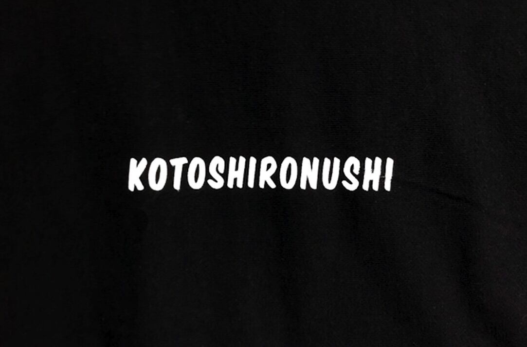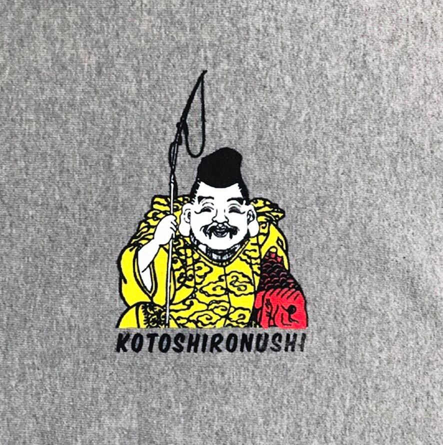 フロントに事代主命イラスト&バックに「KOTOSHIRONUSHI」ロゴ。
